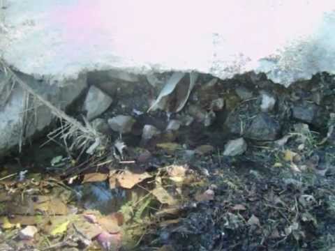 Casi debajo de un añoso algarrobo, se descubre dos caños con vertidos que no sabemos de dónde provienen. En este sector supimos comprobar también aguas servidas en otras oportunidades sobre la carpeta asfáltica, como lo hemos citado anteriormente.